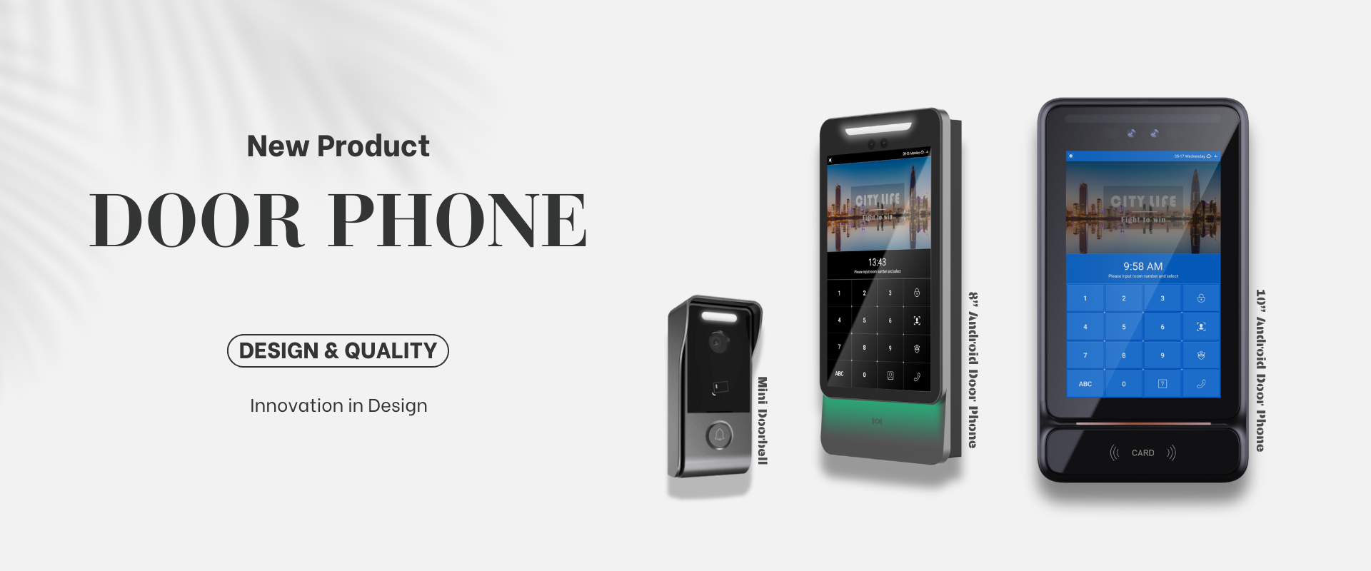 Focusing on cutting-edge 4G-LTE Call and up-to-date Digital IP & IoT technology, our products cover a comprehensive range of 4G GSM intercom, Wireless Video intercom, IP Smart intercom, IoT Smart home, and Smart Access control that can be widely used in residential, commercial, and other scenarios.